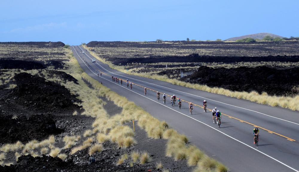 The route, situated along the western and northern coast of the Island of Hawai`i, is designed to test the world's top triathletes. Riders exit the Kailua-Kona pier area heading up Palani road and then loop around and through Kailua-Kona for the first 10 miles before heading out on the Queen Ka’ahumanu Highway and through the legendary lava fields towards Hawi. Following a gradual climb, Hawi marks the turnaround point, from which athletes ride back in the opposite direction, battling the famous winds, to the finish at transition two in Kailua-Kona.