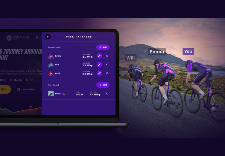 Follow a virtual rider set to a specific power output. You can manually adjust the target W/kg and use drafting to stay in your zone while benefiting from realistic group riding dynamics. Virtual partners now feature an improved interface and can be found under the Pace Partners section as User-based partners.