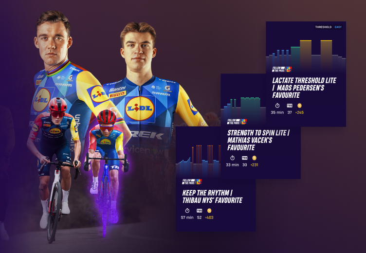 Hit your training goals with workouts favoured by Mads Pedersen, Quinn Simmons, Ellen Van Dijk and other Lidl-Trek riders. Follow dedicated workouts and training plans that suit your level and focus on your needs.