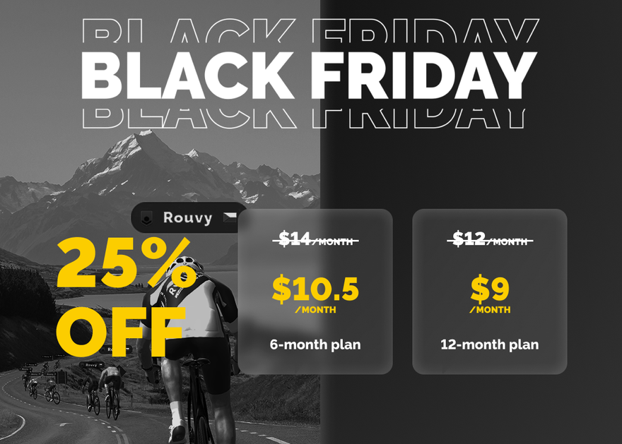It is time for great deals, and ROUVY’s indoor cycling platform is no exception. Providing a great service and marquee events all year round non-stop, ROUVY always offers some options of small discounts here and there, which are devoted to various specific cycling and tri events. However, the new Black Friday week offers now THE BEST DEAL OF THIS YEAR ON ROUVY - with 25% OFF on all plans, except the monthly one. Redeeming the offer on a 12-month plan, the monthly price comes to only $9 a month, compared to $15 on a regular monthly plan, and provides a total of $36 savings.